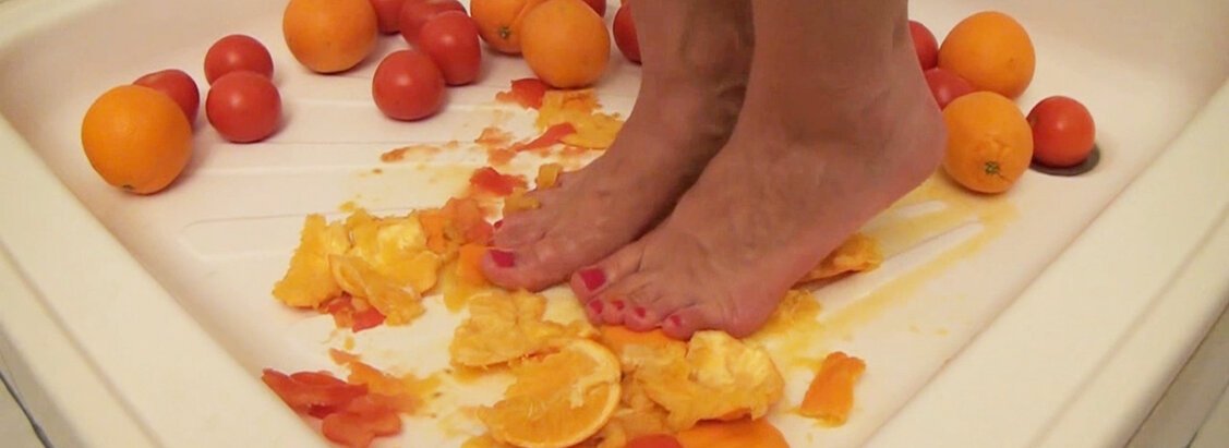 1 kg Mandarin and 1 kg tomato Crushing in the bathtube! :) LOTS of Close-ups!!!!