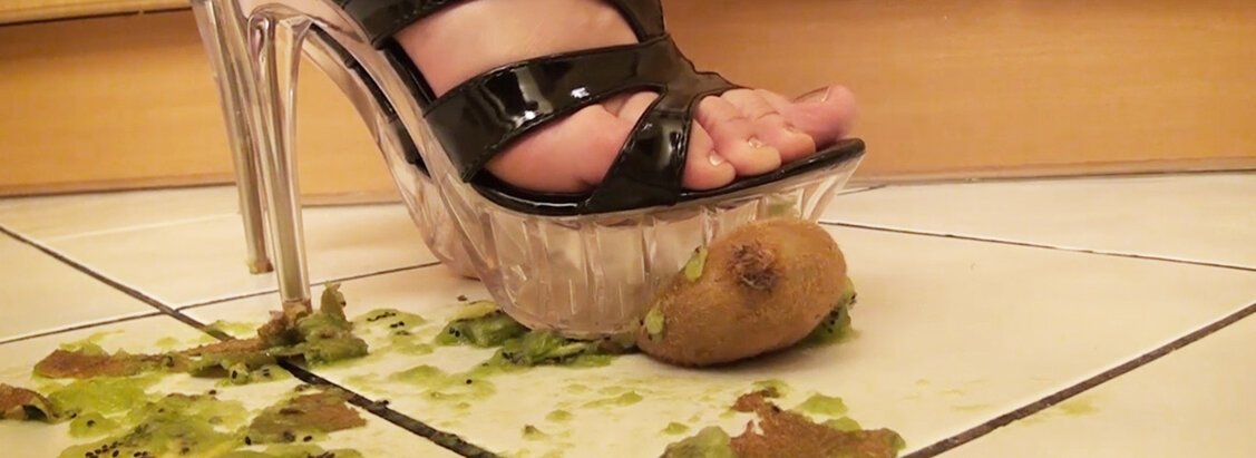 Sexxy, Brunette Abbie's Crushing "Cock Shaped", In Brutal high heels! Fruits: Banana and 2 mandarins!!! If Your cock would be there, I'd do This exactly!!! ;)